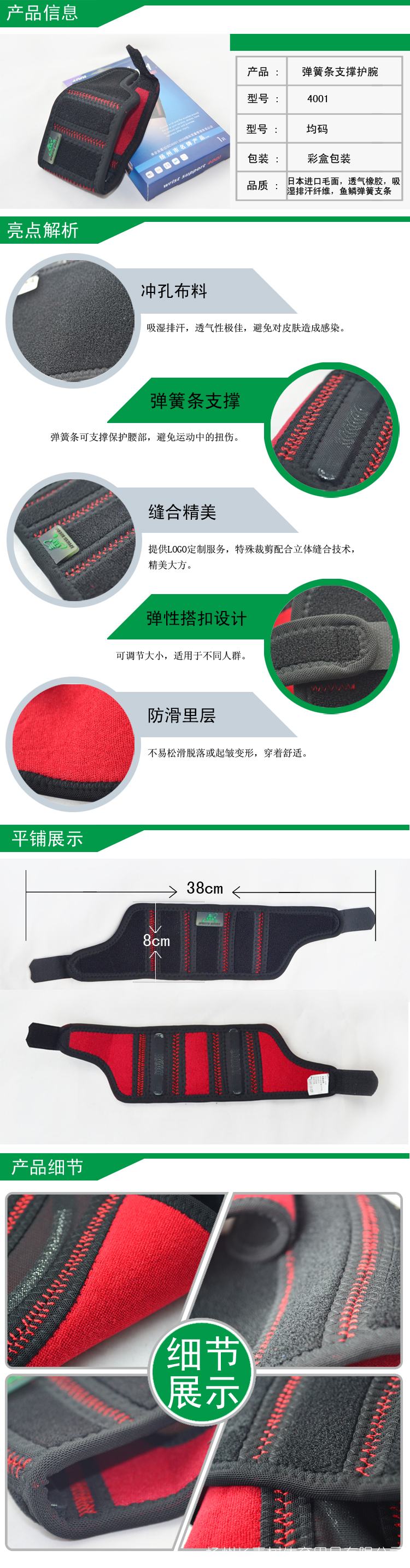 Coolfiber 纖維具備疏水性將水分排出的功能,長時間保持皮膚的干燥。透氣性佳,避免對皮膚造成感染。超彈性環(huán)狀材質(zhì),可以改變保護(hù)部位的壓力,加強(qiáng)穿戴時的舒適感。特殊的裁剪配合立體縫合技術(shù),使護(hù)具更加貼合人體工程學(xué),更能保護(hù)肌肉。促進(jìn)血液循環(huán)及新陳代謝,提高血中含氧率。耐用易洗、不起球、可無數(shù)次使用。配有彈簧條支撐保護(hù)手腕,薄面運動中扭傷,可輔助運動選手取得更好的成績。
